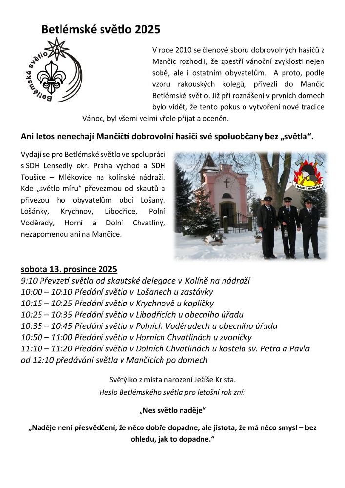 13.12.2025 v 10:00 - 10:10 hod. u zastávky v Lošanech