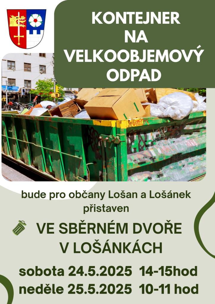 Tuto sobou od 14 do 15 hodin a v neděli od 10 do 11 hodin, je možné využít kontejner na velkoobjemový odpad. Kontejner je přistavěn ve sběrném dvoře Lošánky. Zde je možné vyhodit starý nábytek, koberce, matrace a další rozměrný komunální odpad, který nepodléhá třídění.